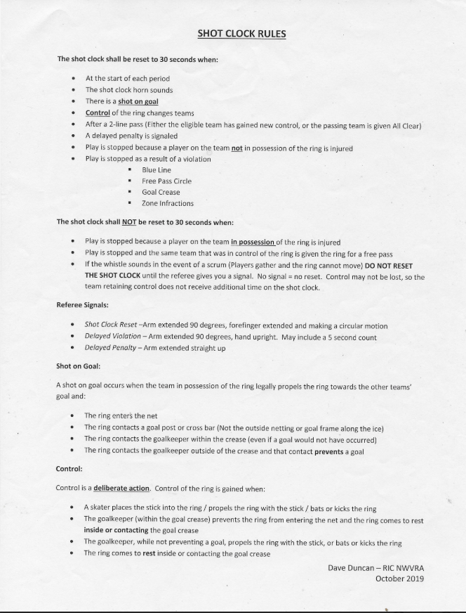 Each ringette game requires a Time keeper/Score clock operator, a Score keeper, and a Shot clock operator. For NWVRA home games, these roles are served by the home team parents!